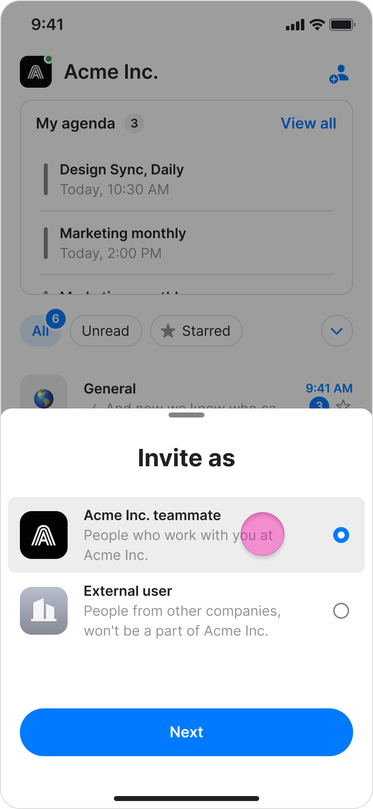 Select "Invite as Teammate" (or your company’s name) from the dropdown menu.