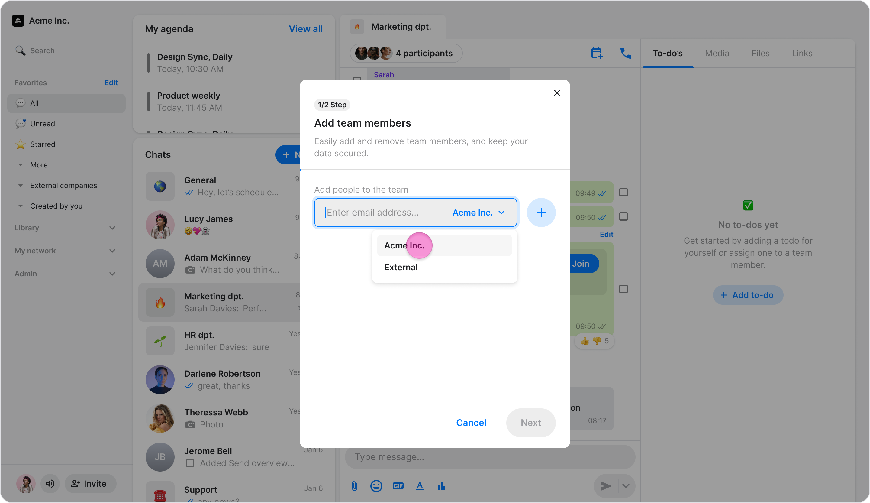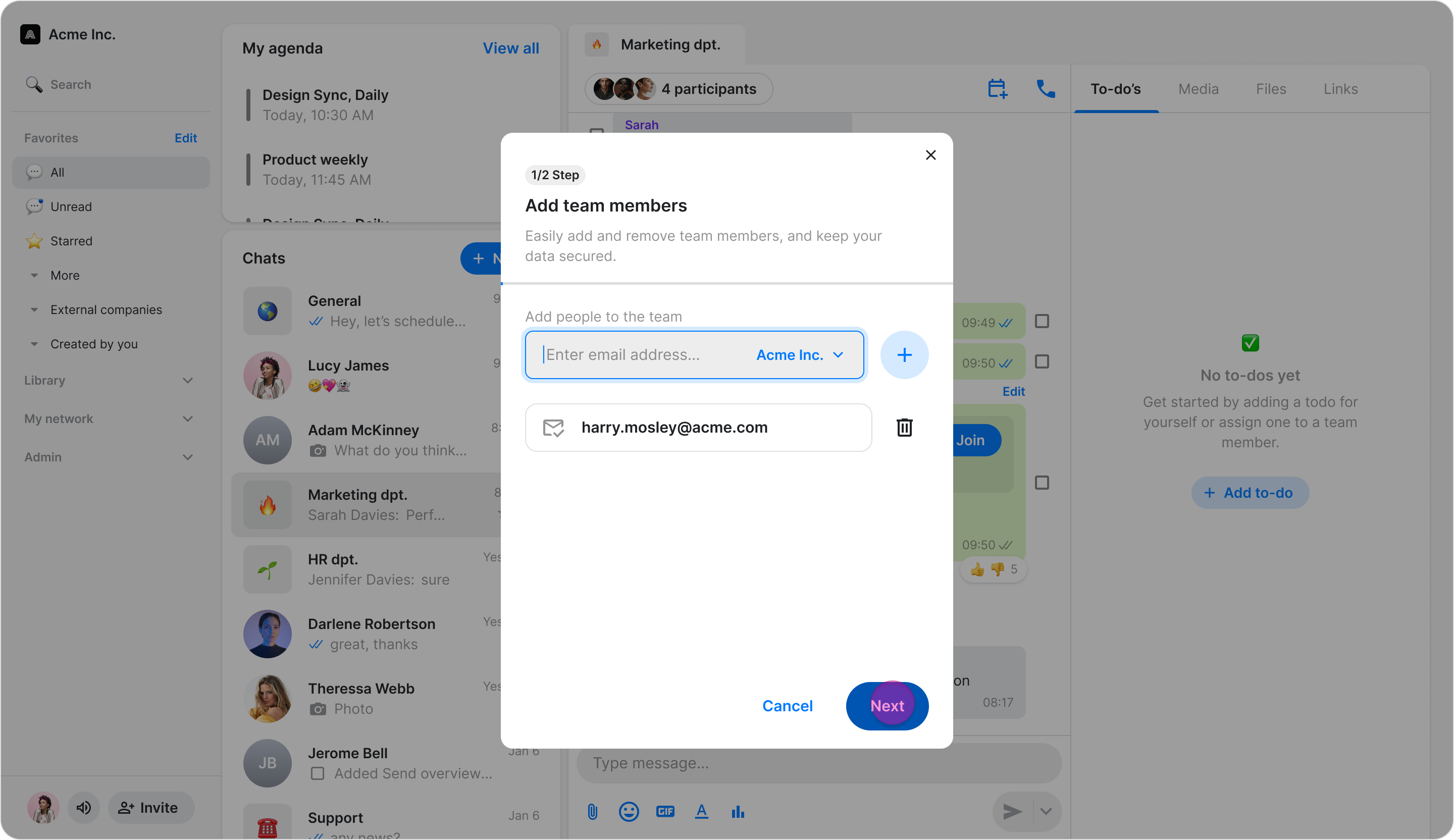 Add your team members to Zenzap using manual invitations to build your team workspace.