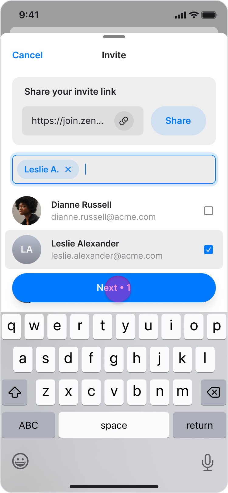Use the Zenzap mobile app to send manual invitations via email or SMS directly to team members.