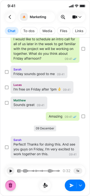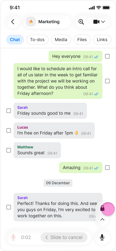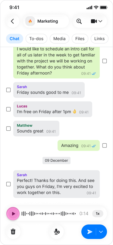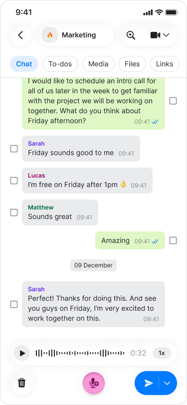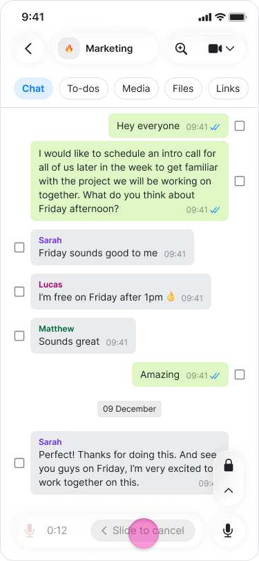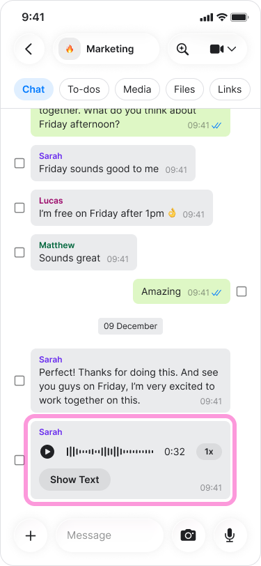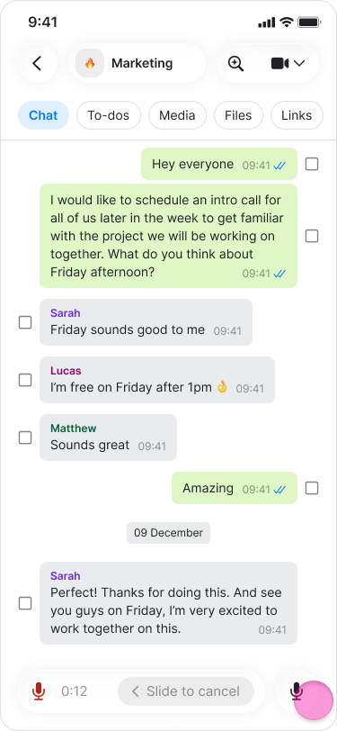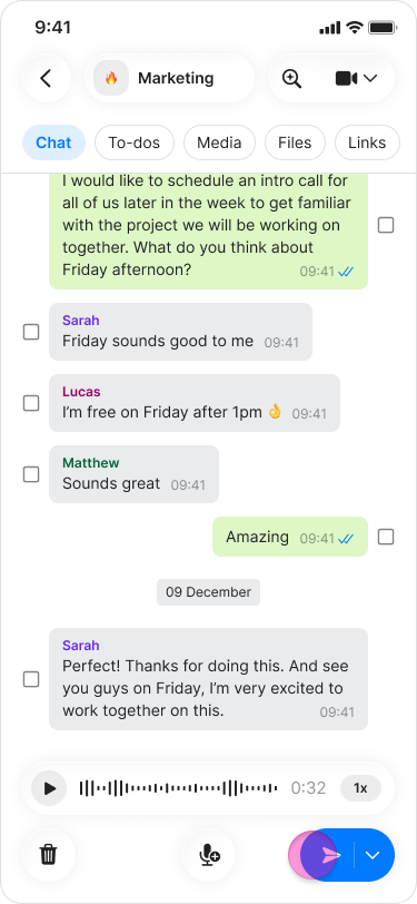 Tap and hold the "Microphone" icon in the bottom right corner of the message field.