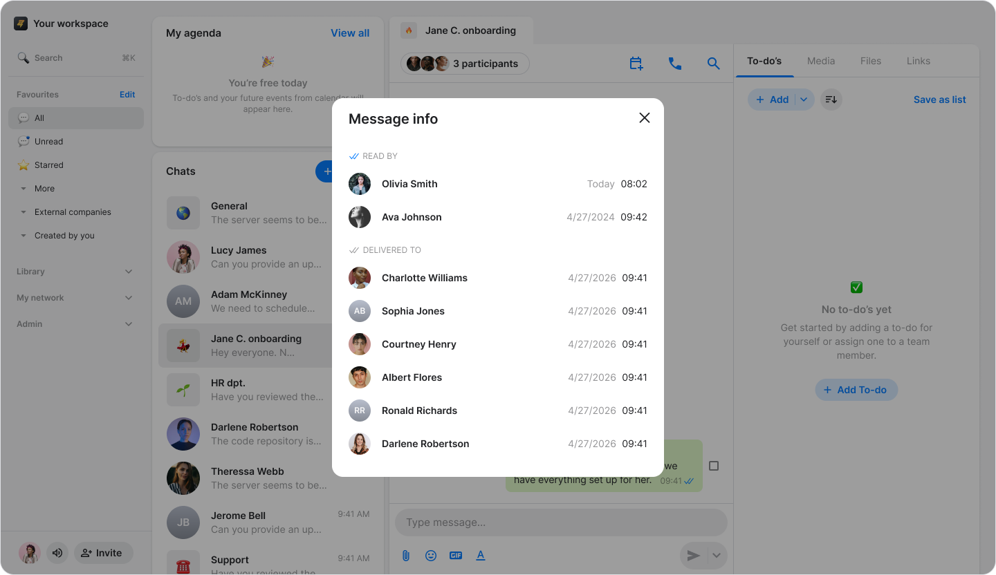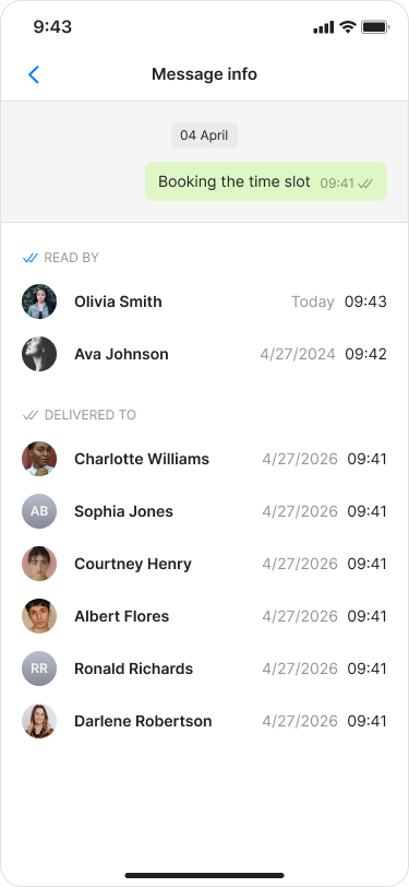 Check who has received and read messages in both direct messages and group chats.