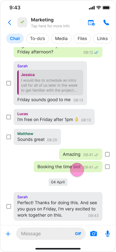 “READ BY”: See who has read the message.