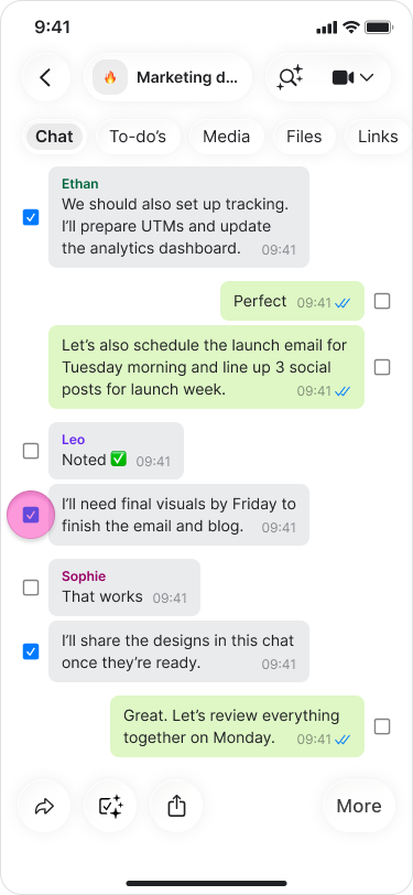 Tap the “Circle” icon near the messages you want to create to-dos for.