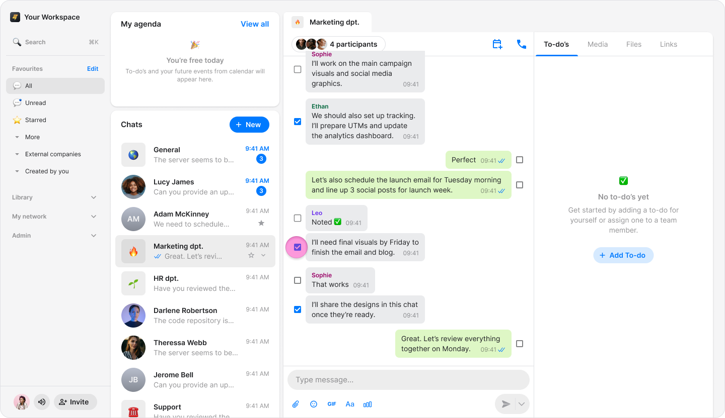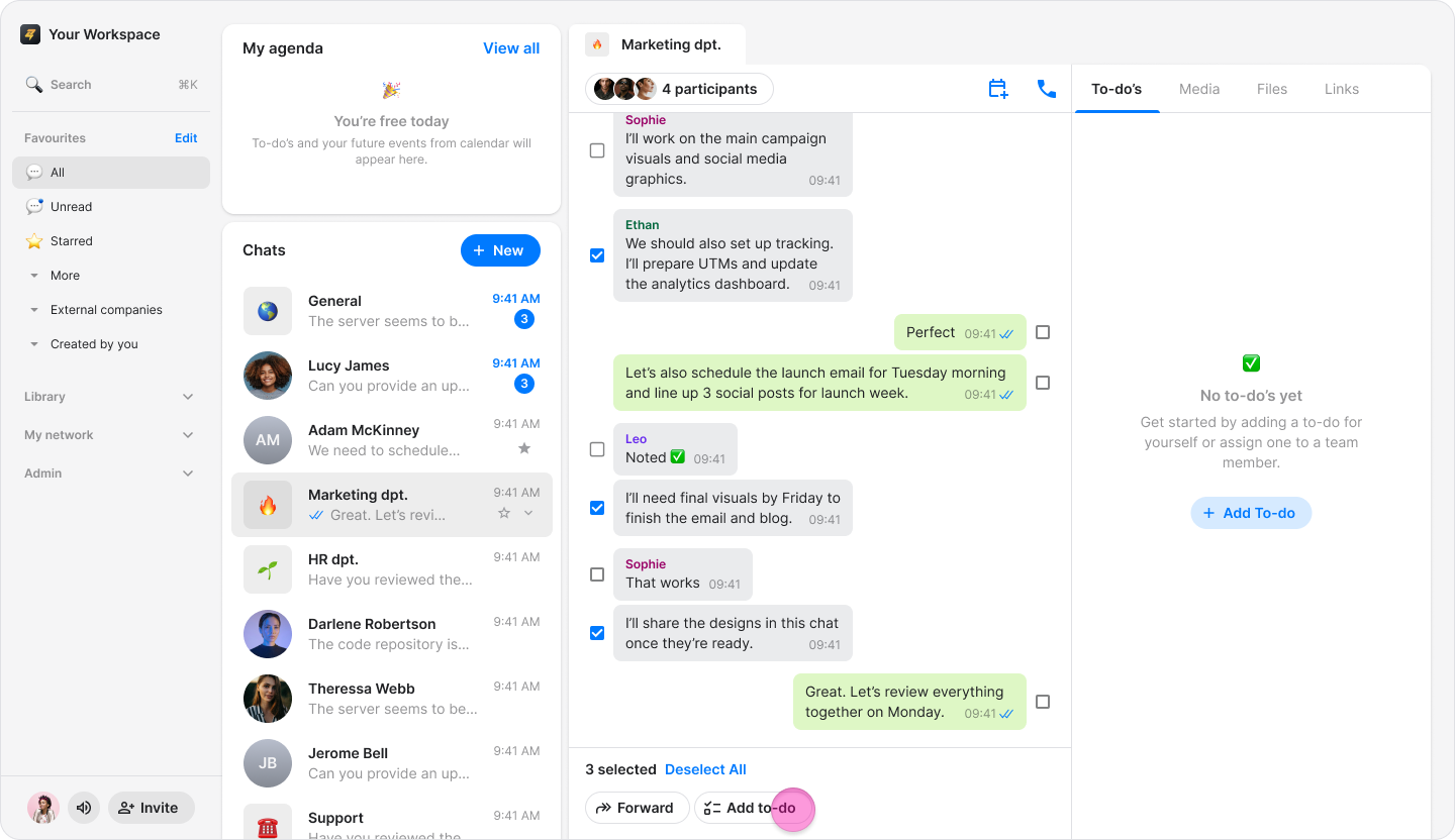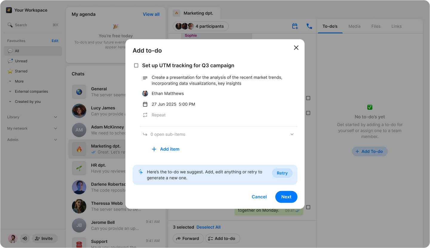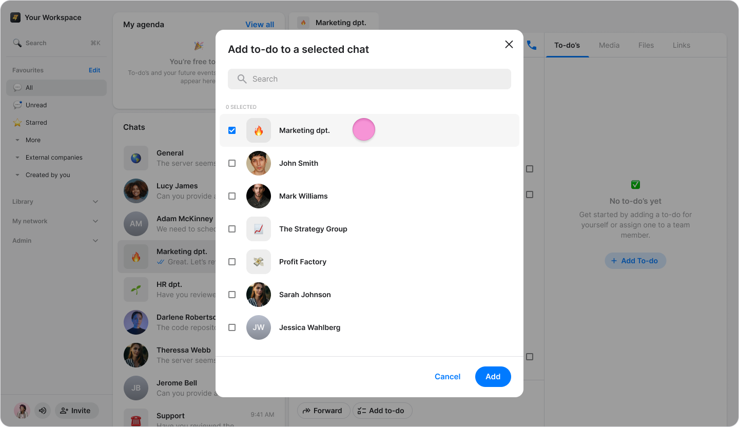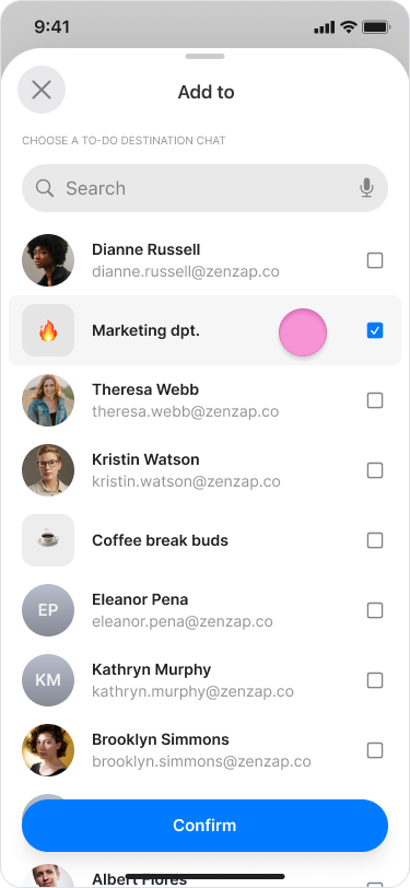Search and select the chat you want to send the to-dos to.