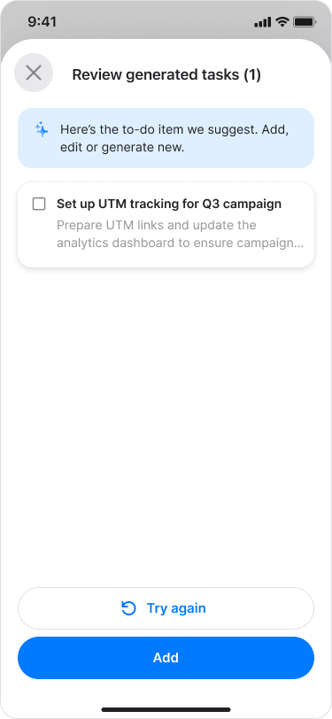 Review the list of AI-generated tasks.