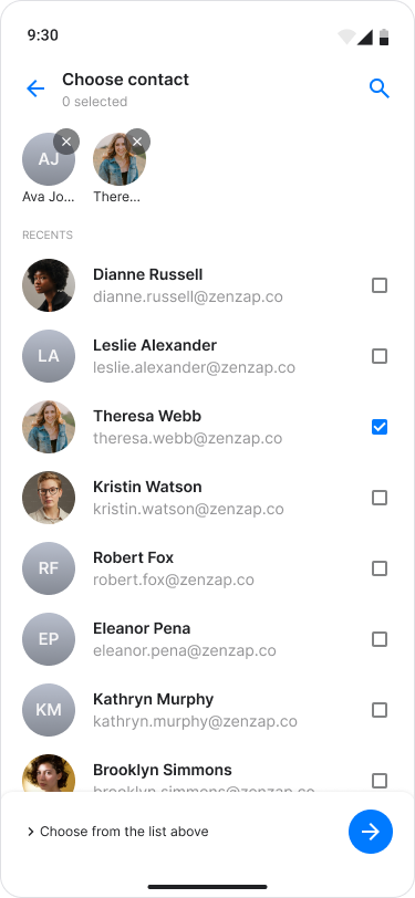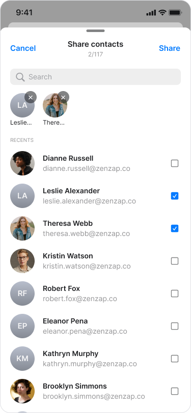Search for and select the contacts you want to share.