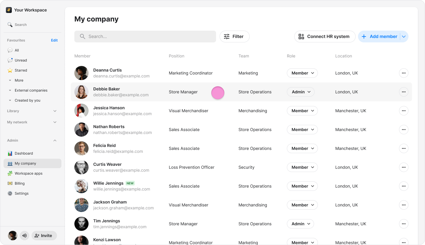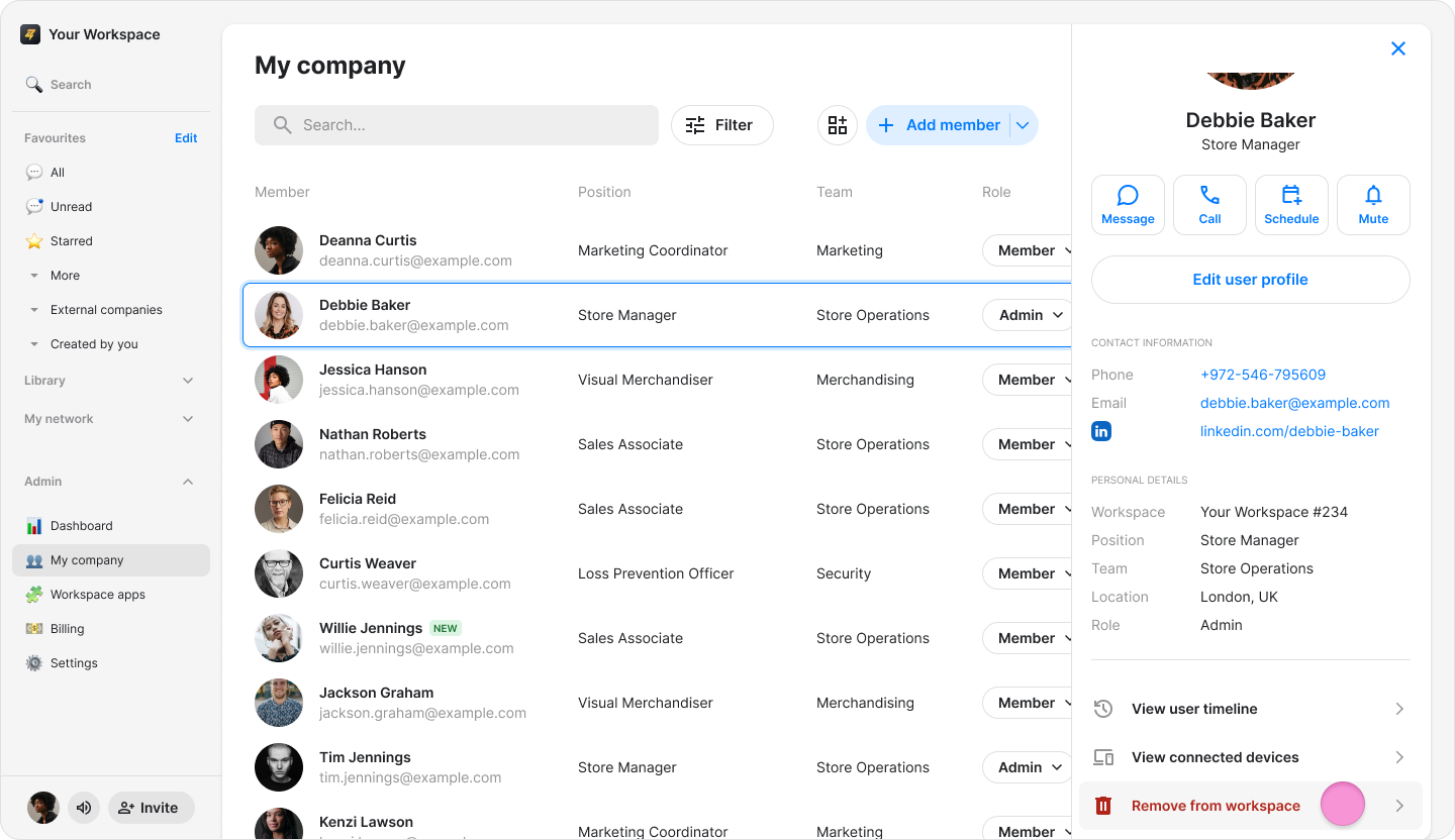 Instantly revoke a user's access to your workspace to protect company data and maintain security when a team member leaves.