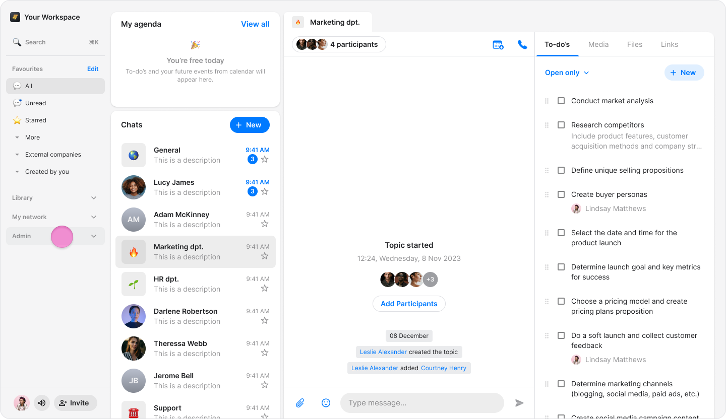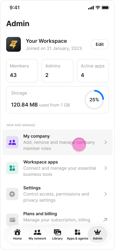 Click "My company" in the sidebar menu (on macOS) or "Admin" (on Windows and Web).