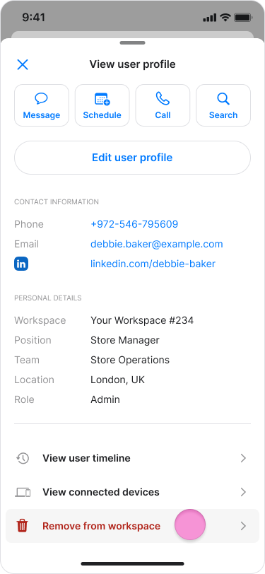 Scroll down and tap "Remove from workspace".