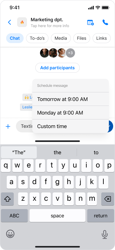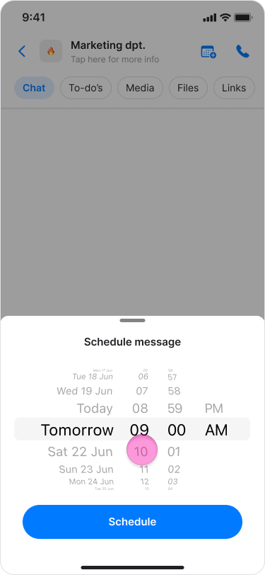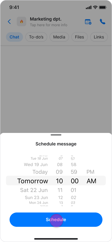 Schedule messages to be sent at a specific time, allowing you to plan ahead for reminders, announcements, or messages sent outside of non-working hours.