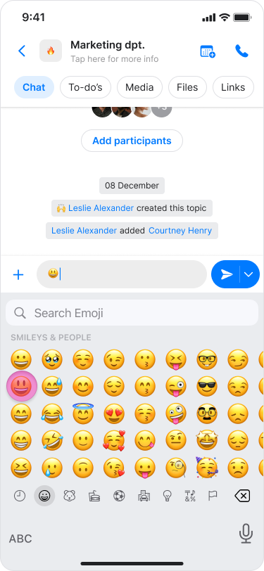To react to a specific message with an emoji, see our article "React to Messages”.