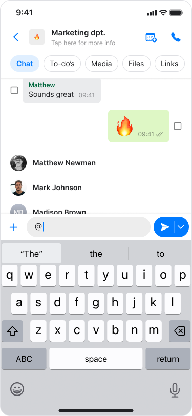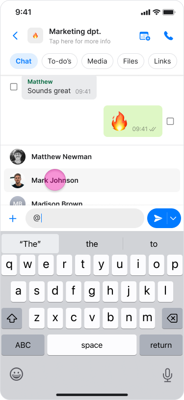 Mention specific team members in a chat to ensure they notice your messages and to associate information with the correct person.