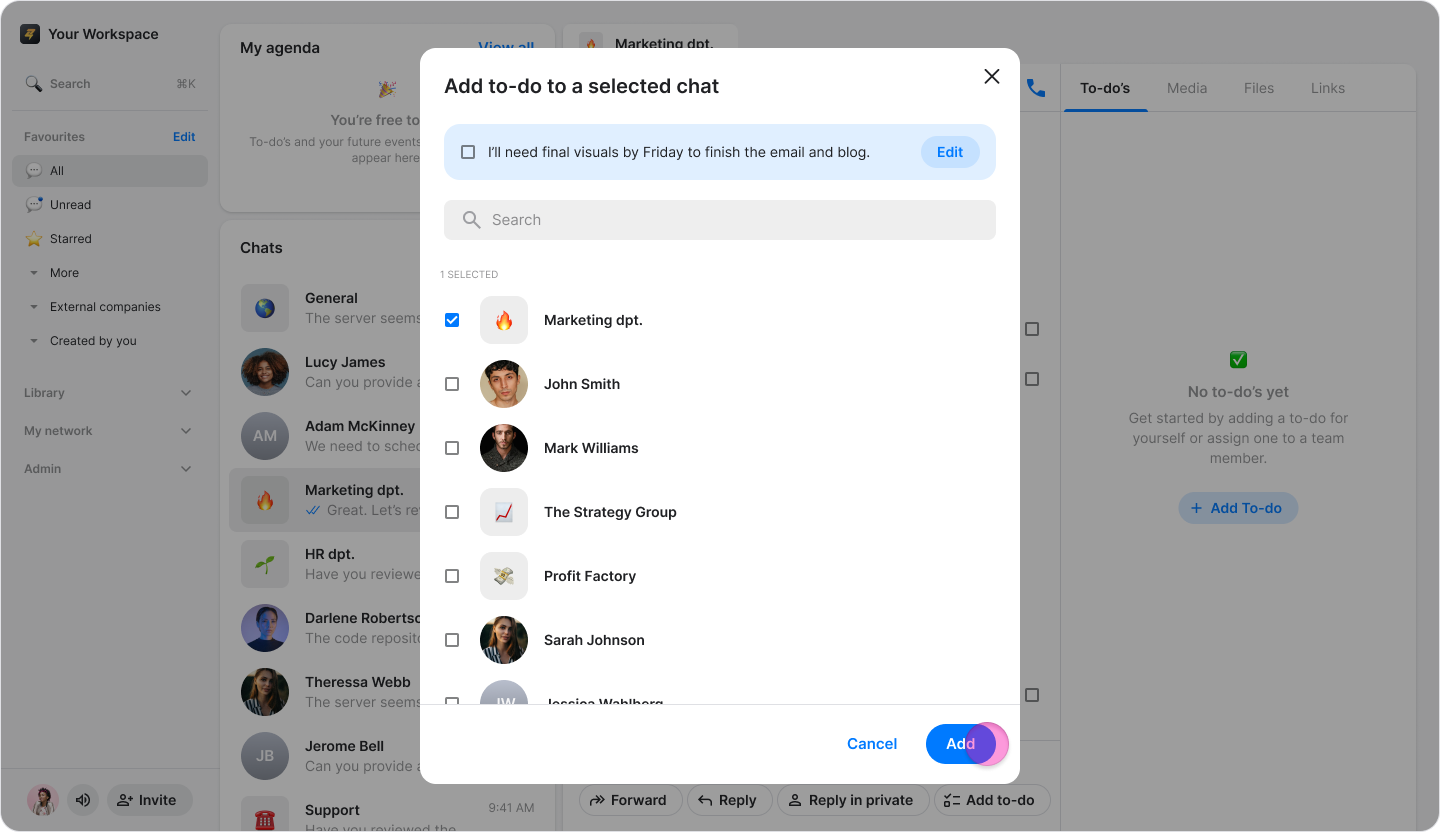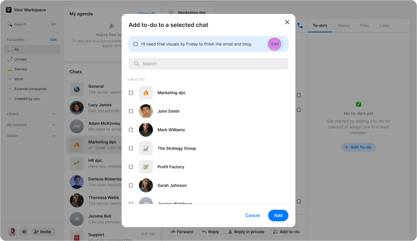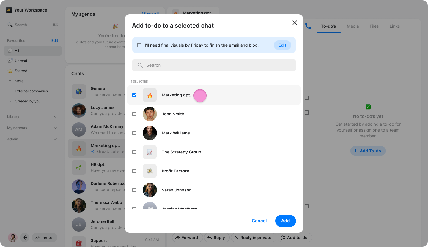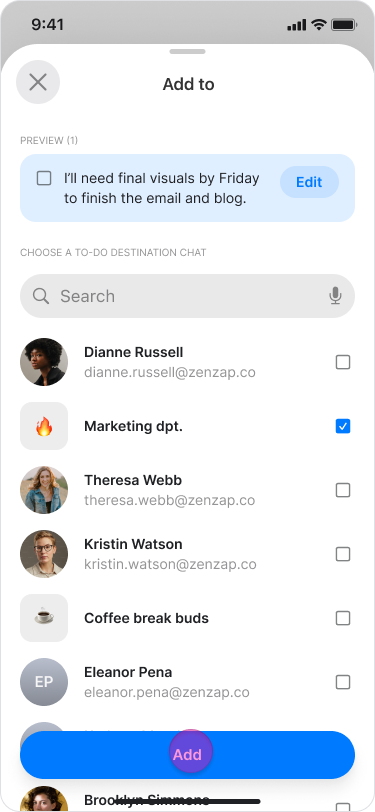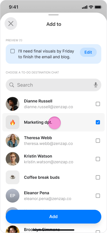 Choose or search for the chat where you want the to-do to appear.