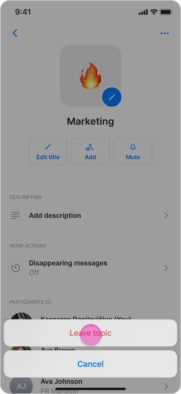 In your message list, you can slide a chat left and tap "Leave topic" or long-press the chat and select “Leave the topic”.