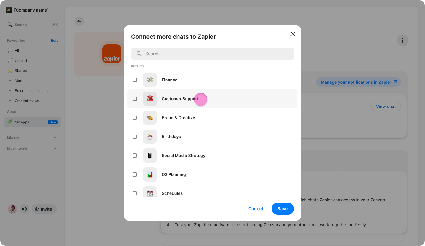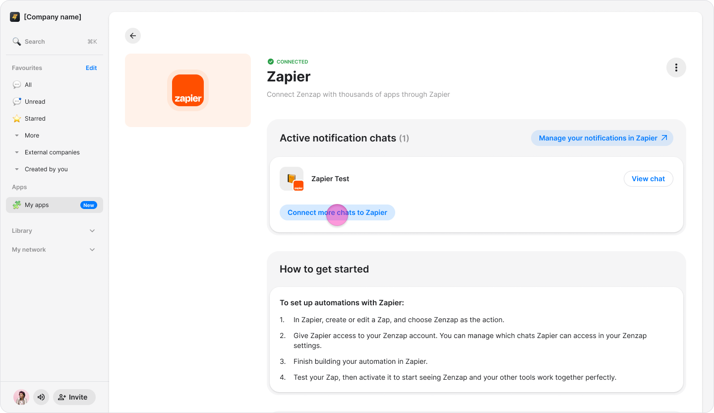 Connect your Zapier account to Zenzap to receive real-time notifications and manage automations directly within your chats.