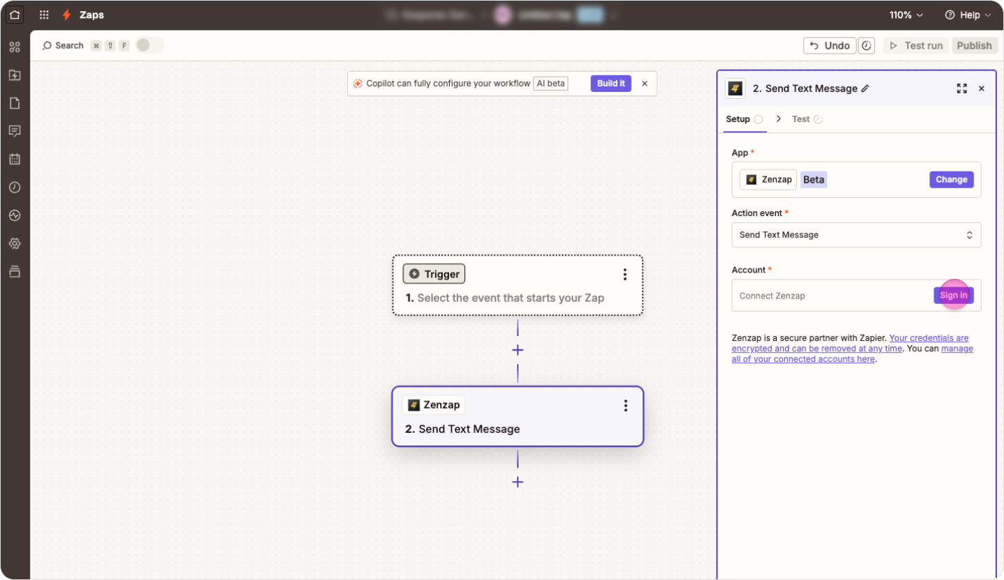 1. Connecting Zenzap from Zapier