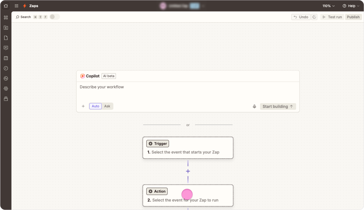 Add an empty "Action" step in the Zap editor.