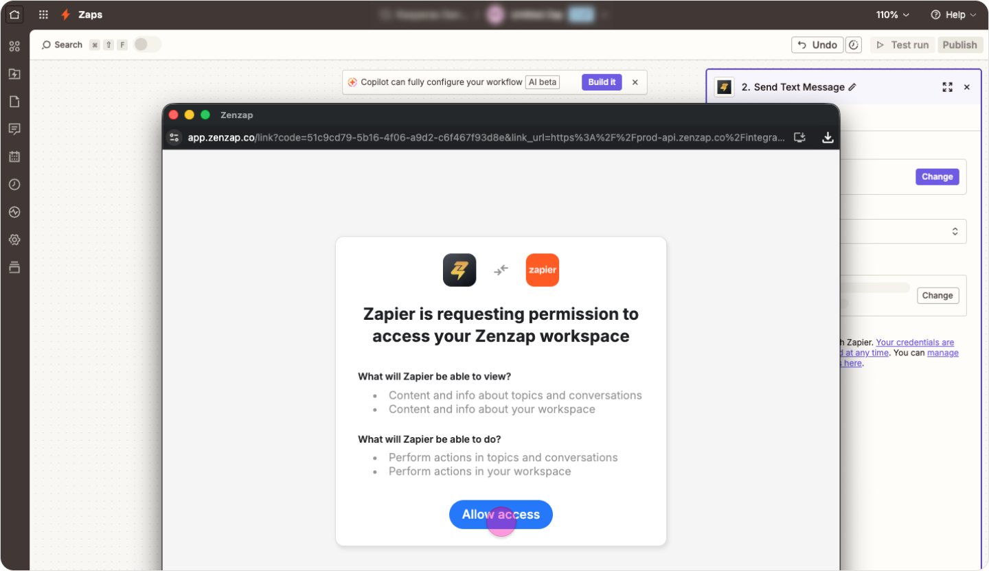 Connecting Zapier from Zenzap: