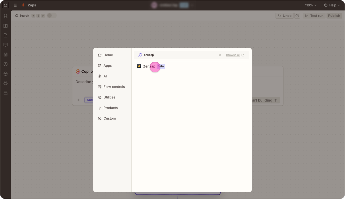Search “Zenzap”, and click on the “Zenzap” integration.